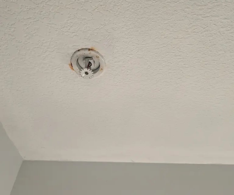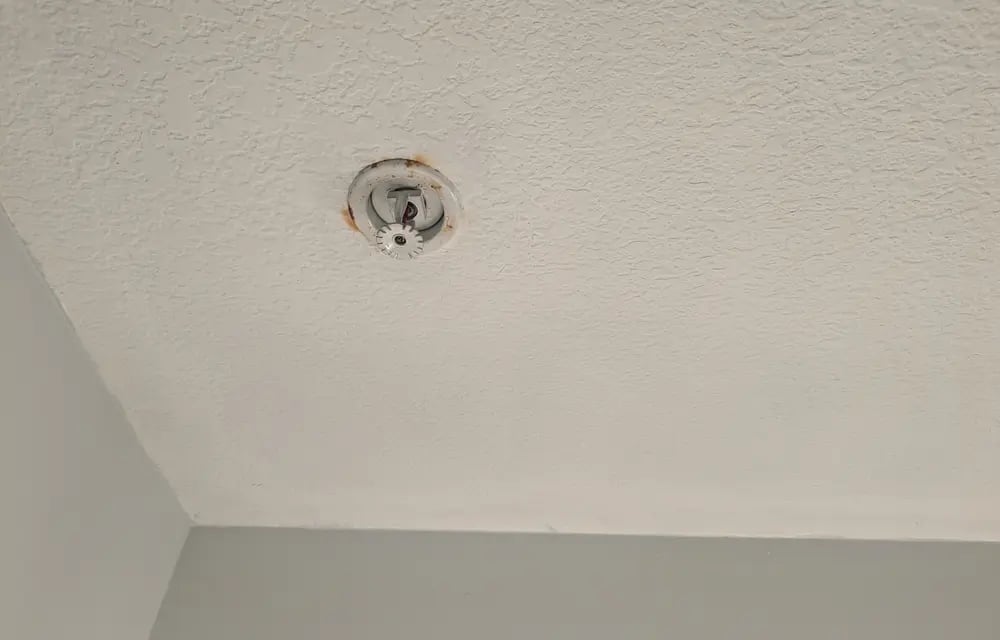 Humidity gets to bathroom fixtures, including sprinkler heads - but you can quickly (and safely) repaint those, while freshening up tired ceiling paint.