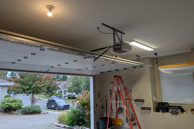 With both sides sending out a total of 300 watts' equivalent, this garage is bright even in gloomy weather